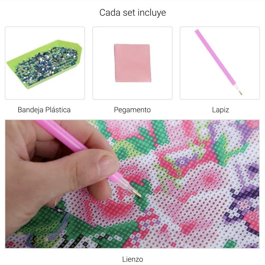 - El kit incluye: lienzo adhesivo de alta calidad con imagen preimpresa, piedras de resina brillantes, aplicador especial